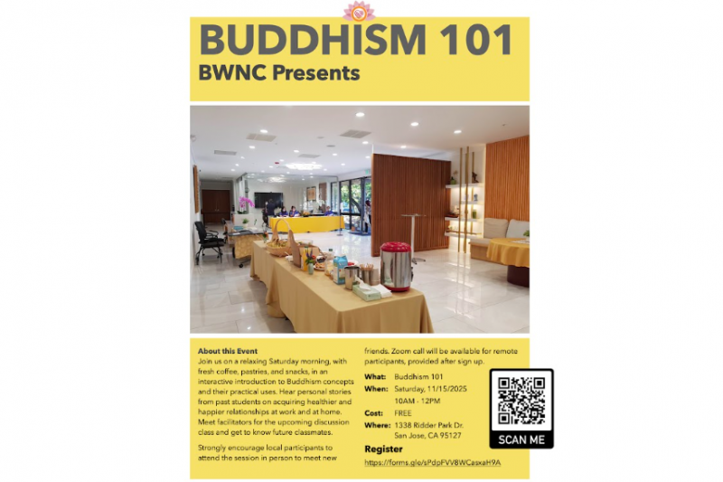 Buddhism 101 – Join us on a relaxing Saturday morning, with fresh coffee, pastries, and snacks, in an interactive introduction to Buddhism concepts and their practical uses. Hear personal stories from past students on acquiring healthier and happier relationships at...