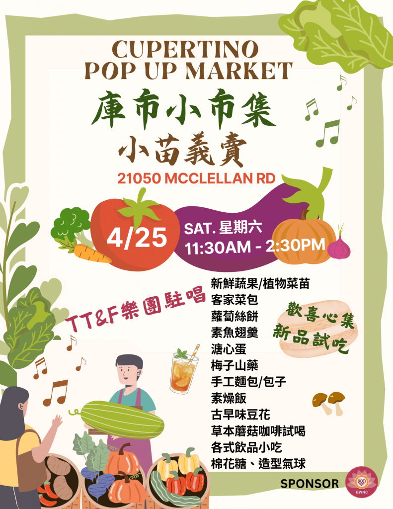 春天來了!4/25星期六,11:30-2:30,庫巿小苗義賣與各式美點等你來!